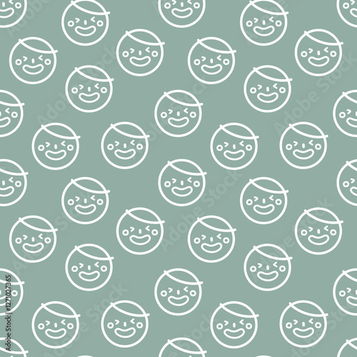 seamless minimal smile line art repeat pattern in green background, flat vector illustration graphic design