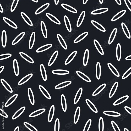 Seamless modern pattern with white grains of rice on a black background. For fashion fabrics, textiles, decorative pillows. Vector.