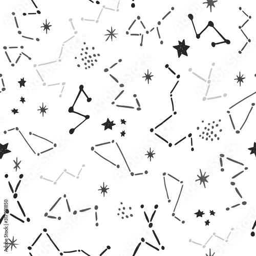 Seamless monochrome pattern star, constellation. Creative space vector childish texture. Perfect for apparel, textile, fabric, wallpaper.