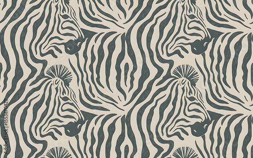 Seamless Neutral-toned Zebra Stripe Pattern: Elegant, Hand-Drawn Style, Modern Textile Design.