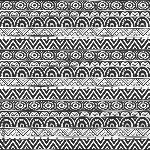 Seamless ornament from geometric elements in ethnic zen style black and white