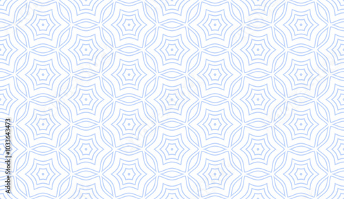 Seamless Outline Geometric Pattern. Abstract Light Blue Texture. Stars in Hexagonal Shape.