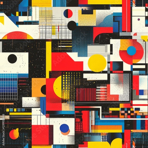 Seamless Pattern - Abstract Composition: Geometric shapes, bold primary colors, modern design.
