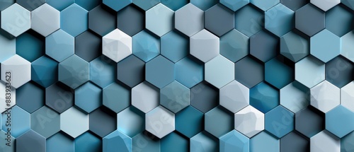 seamless pattern, Abstract 3D hexagonal geometric pattern in shades of blue and white, creating a modern and futuristic design background image.