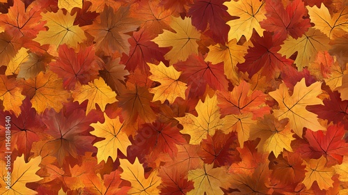 Seamless pattern background featuring abundant autumn fall leaves in warm shades of red, orange, yellow, and brown for graphic design, textile fabric, web design, digital art