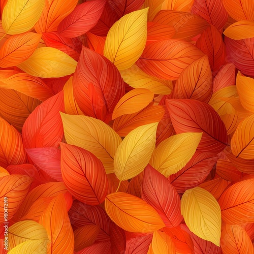 Seamless pattern background of vibrant autumn leaves in shades of orange, red, and yellow