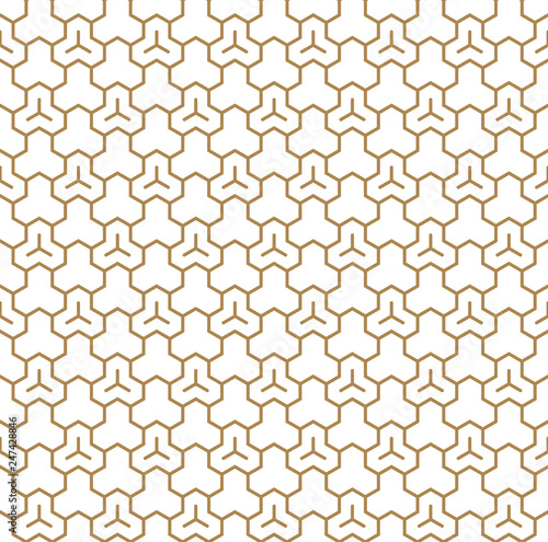 Seamless pattern based on Japanese ornament Kumiko.Golden color.