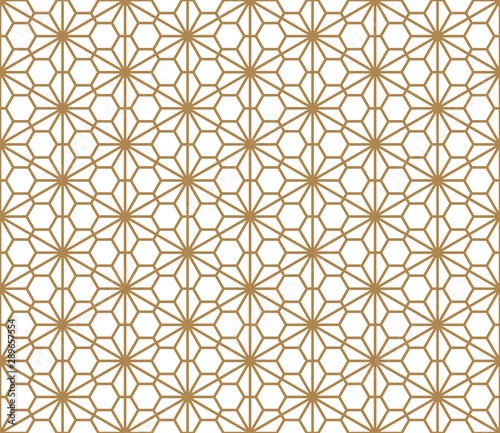 Seamless pattern based on Japanese ornament Kumiko.Golden color.