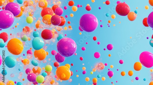 seamless pattern, Colorful abstract spheres in vibrant hues create a playful atmosphere against a bright blue background.