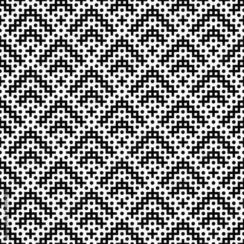 Seamless pattern. Figures, crosses, circles ornament. Folk wallpaper. Shapes backdrop. Embroidery background. Tribal motif. Ethnic mosaic. Digital paper, textile print, web design, abstract. Vector.