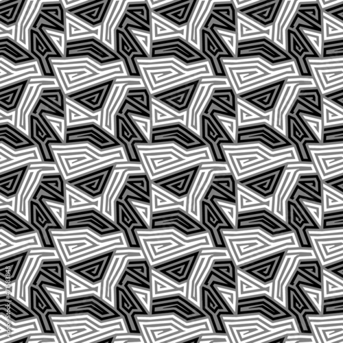 Seamless pattern. Figures, curves ornament. Folk wallpaper. Linear backdrop. Embroidery background. Tribal motif. Ethnic mosaic. Digital paper. Web design. Textile print. Abstract vector artwork.