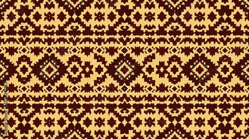 seamless pattern in natural earth tones. Browns and beiges create a muted color palette for the ikat geometric folklore ornament, a tribal ethnic vector texture in Aztec style.