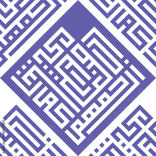 Seamless Pattern kufic square arabic calligraphy of a verse from chapter Al-Isra ( The Night of Journey ) from the Quran. Simple modern background texture. Repeat geo design