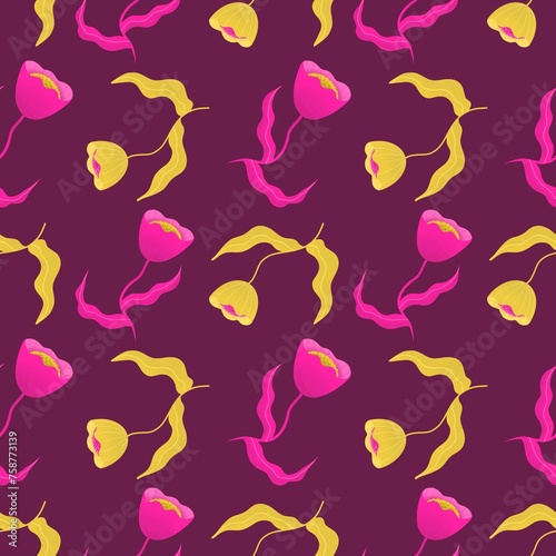 Seamless pattern modern abstract flowers pink