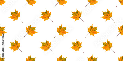 Seamless pattern of colorful isolate maple leaves creating an autumnal backdrop
