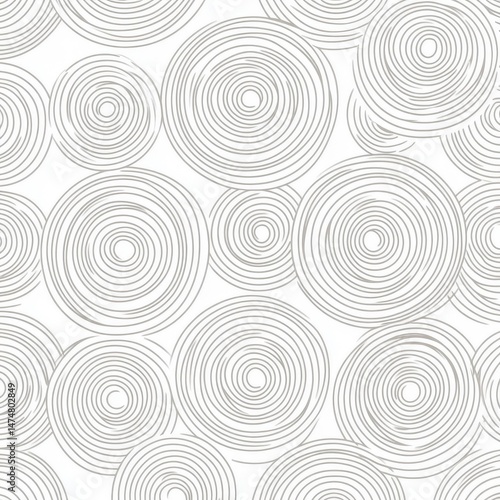Seamless pattern of concentric circles, light gray lines on white background. Circles layered, creating depth and texture, simple design