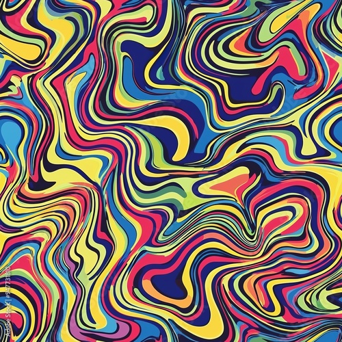 Seamless pattern of dynamic, colorful swirls with a trippy visual effect