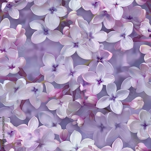 Seamless pattern of lilac flower clusters, beautifully spread over an isolated pastel violet background, creating a serene effect,seamless pattern
