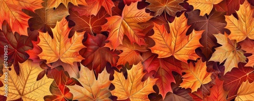 Seamless pattern of maple leaves, autumn palette with detailed textures, ideal for fabric and wallpaper designs