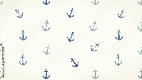 Seamless Pattern of Nautical Anchors in Watercolor Style, Soft Blue Hues on a Light Background, Ideal for Textile Prints and Decorative Applications