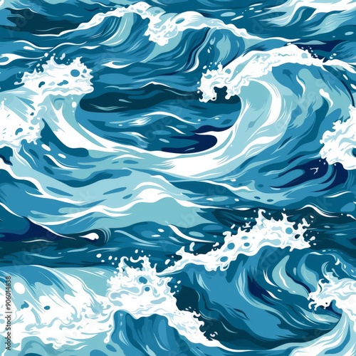 Seamless pattern of rough ocean waves in a stormy sea with foam and splashes
