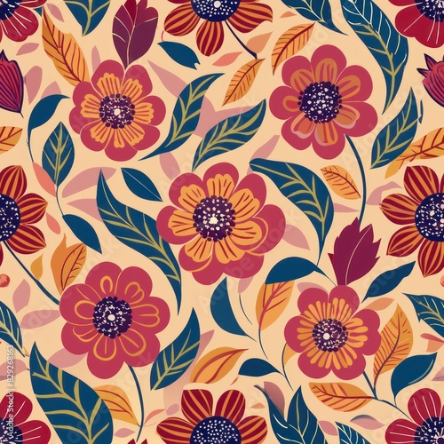 Seamless pattern of rounded lines with floral motifs interspersed throughout, adding a touch of nature-inspired beauty to your gift wrap, Generative AI