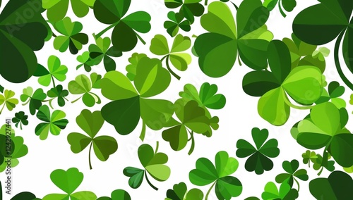 Seamless Pattern of Vibrant Green Shamrocks on White Background for St. Patrick’s Day and Festive Designs
