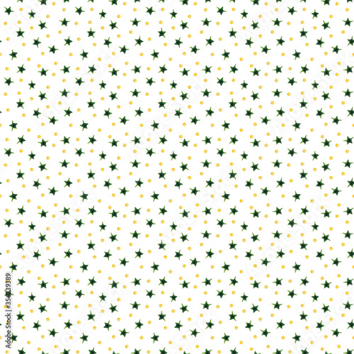 Seamless pattern of watercolor green stars on a white background. Use for design, invitations, holidays, weddings.