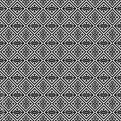 Seamless pattern repeating design with geometric shapes.