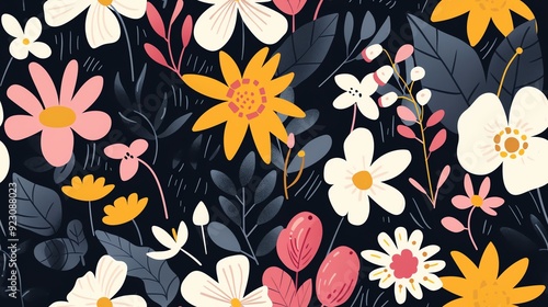Seamless pattern Seamless 1980s floral pattern with bright, contrasting colors