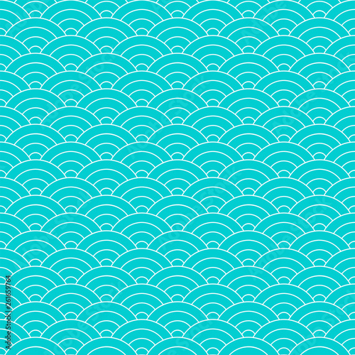 Seamless pattern. Wave. Fish scales texture. Vector illustration. Scrapbook, gift wrapping paper, textiles. Blue simple background