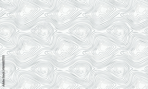 Seamless Pattern with 3D Abstract Topographic Lines, Minimalist White and Grey Vector Background