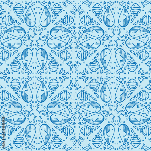 Seamless pattern with cute whales