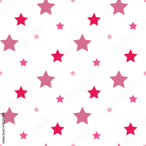 Seamless pattern with festive pink stars on white backgound. Vector image.