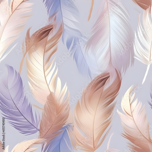 Seamless pattern with gentle feather texture. Simple soft wallpaper design. Home decor fashion textile. AI illustration.