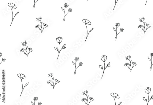 Seamless pattern with hand drawn flowers isolated on white background. Vector floral ornament, good for print, apparel, textile, fabric and wallpaper