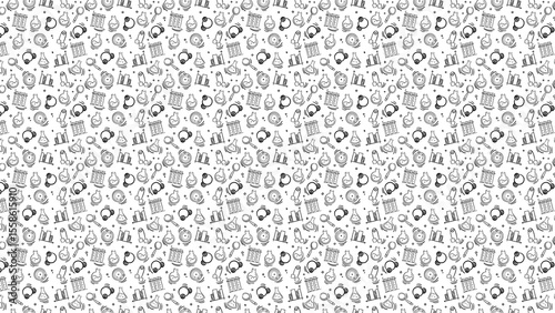 Seamless pattern with hand drawn science equipment on white background for textile and paper design