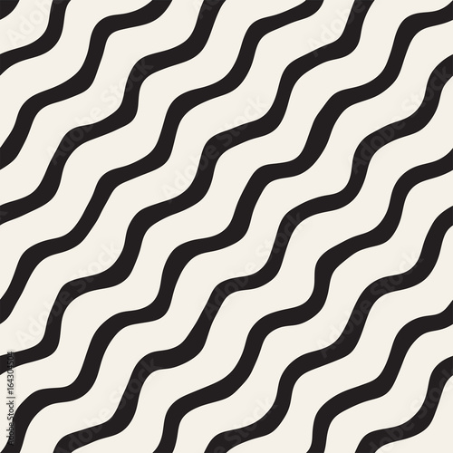 Seamless pattern with hand drawn waves. Abstract background with wavy brush strokes. Black and white freehand lines texture.