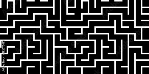 Seamless pattern with maze. Monochrome abstract background. Vector geometric illustration