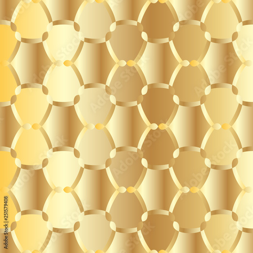 Seamless pattern with ordered arrangement of abstract geometric shapes. The illustration is made in gold shades.