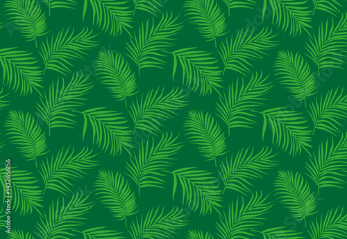 Seamless pattern with palm leaves on dark green background. Vector hand drawn illustration. Hand drawn