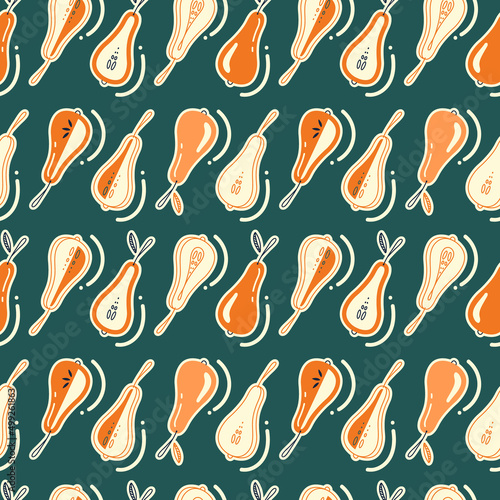 Seamless pattern with pears in doodle style. Vector fruit background. Print for textiles, wrapping paper, wallpaper.