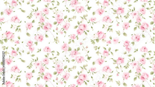 seamless pattern with pink flowers, Tiny pink roses on a white background, a vintage shabby chic style pattern.