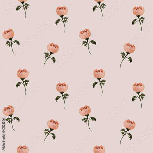 Seamless pattern with small, sparse flowers. A delicate design featuring smaller, scattered flowers in soft, harmonious colors, perfect for use in home decor, textiles, stationery, backgrounds.