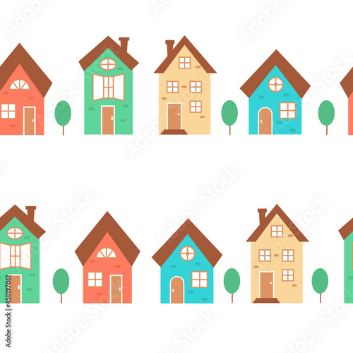 Seamless pattern with street houses. Bright background for design and decoration of products.