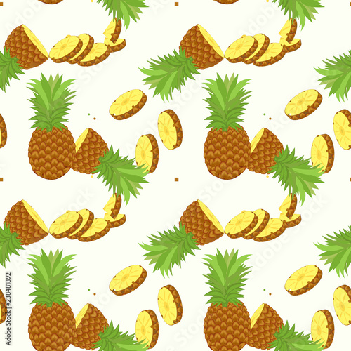 Seamless pattern with tropical Ananas. Element for design of invitations, movie posters, fabrics and other objects. Isolated on white. Vector EPS10