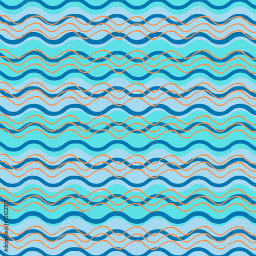 seamless pattern with waves, abstract blue wave line art background