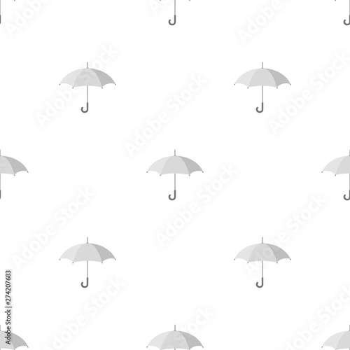 Seamless pattern with white umbrella icon on white background. Vector illustration for design, web, wrapping paper, fabric, wallpaper.