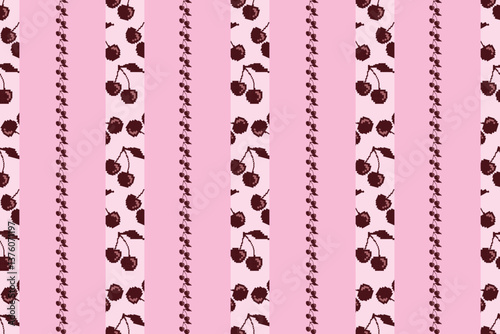 Seamless pixel cherry pattern, red, for printing carpets, fabrics and decoration.