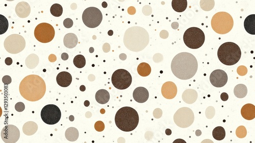 Seamless polka dot pattern with dense layout, featuring overlapping brown dots on an off-white background, creating a modern, clean design ideal for high-fashion textiles and contemporary fabrics.
